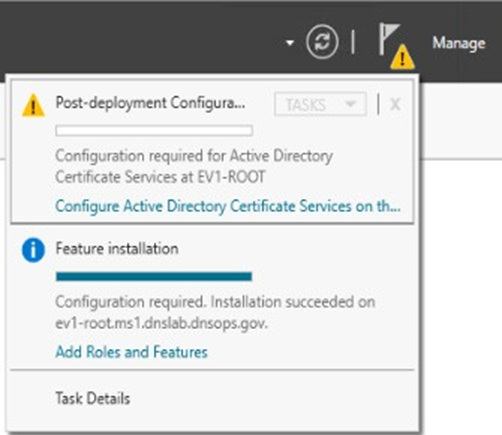 Create a CNAME record for PKI.MS1.DNSLAB.DNSOPS.GOV to point to ev1-issuing.ms1.dnslab.dnsops.gov.