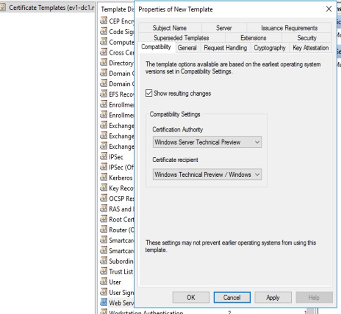 On the Issuing CA (ev1-issuing), open Certification Authority -> Certificate Templates.