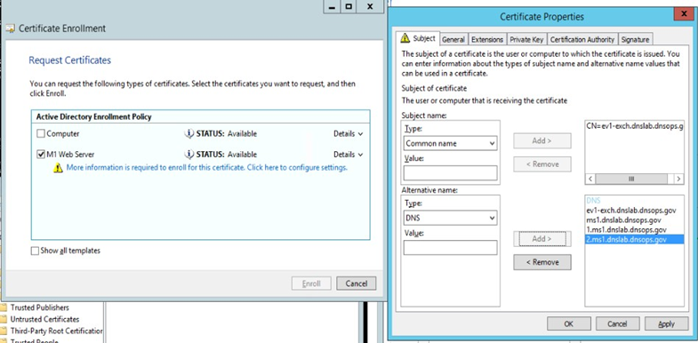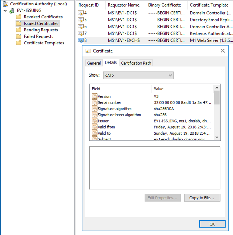 Alternative Name: DNS = ev1-exch.ms1.dnslab.dnsops.gov, ms1.dnslab.dnsops.gov, 1.ms1.dnslab.dnsops.gov, 2.ms1.dnslab.dnsops.gov